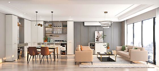 柜类花色标配更多,升级后更高达50余款,并配有柜类五金、宅配家具,联合活动再加赠送方太厨电,满足了拎包即住需求;