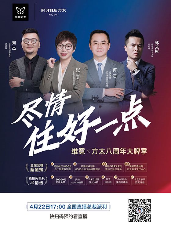 另外,此次大牌季活动,维意定制还将于4月22日在线上举行全国大直播。