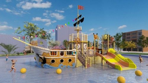 图为使用酷家乐快速渲染的室外游乐设施场景