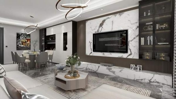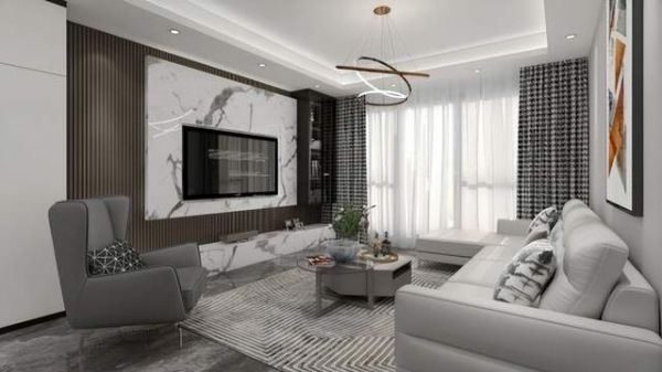 太子家居现代风格全屋家居案例,以简单的色调,流畅的线条,营造大气时尚的家居空间。大理石+木质电视背景墙,独特的纹理显现出高级的质感,使得整个空间融合得恰到好处;墙壁的书架规划,提高空间利用率,使用让整个客厅鲜明起来;搭配成品家具,白色沙发+灰色单椅,兼具美观与实用,点亮客厅灵魂。