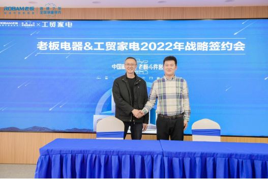 发布会上的另一亮点是,老板电器与工贸家电签署了2022年战略合作协议。