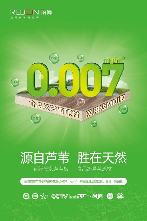 说起板材,很多品牌都标榜自己“零甲醛”,但俗话说,买的不如卖的精,消费者常常因为缺乏专业知识而掉进商家的陷阱里。在目前的板材市场当中,大多板材使用脲醛胶为胶黏剂,必然会含甲醛。丽博家居的芦苇板和净芯板,突破了这一困局,它们使用的MDI胶黏剂,不含醛、苯等有害物质。而且,两种板材分别采用天然的芦苇和秸秆作为原材料,从真正意义上做到了环保,符合目前行业最高标准ENF级(新国标,高于美国CARB-NAF级)。