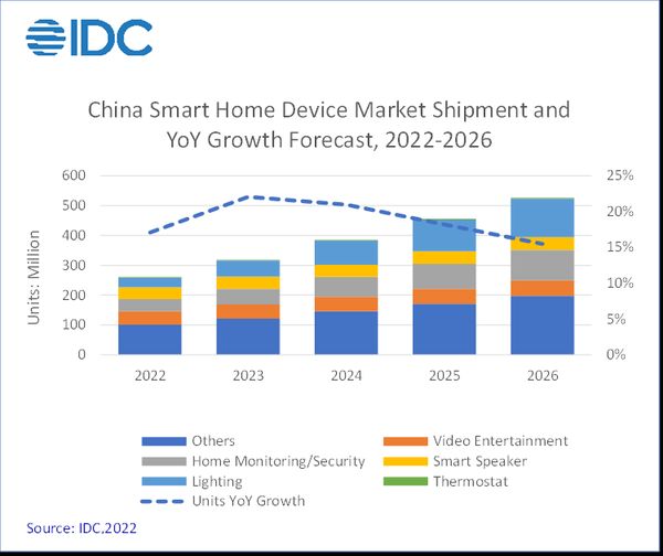 虽然市场在2021年没有达到两位数的增长,但出货量显示,智能家居升级是2021年的主要增长动力。IDC预计,随着智能家居优化和升级的继续,中国智能家居市场的出货量将同比增长17.1%,超过2.6亿台。