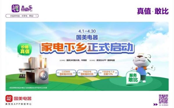 为更好地实现“家电下乡”活动的落地,真快乐APP和国美电器发放的以旧换新补贴、节能补贴,有力夯实“能消费”的基础,完善“敢消费”的保障,营造“愿消费”的场景,全方位满足居民多元化消费需求。例如,在西安国美、福州国美、宜昌国美等地的多个城市,消费者皆可参与真快乐APP和国美电器在政府指导下推出的以旧换新、节能补贴、家电下乡等活动。其中,以旧换新活动单品满1000减100,至高减400(包含品类彩电、洗衣机、冰箱、空调、厨卫);购节能家电,可享受绿色补贴,节能补贴至高可享800元;更有千款产品参加家电下乡行动,立省10%。同时,国美也积极肩负起企业社会责任,发挥全零售生态闭环优势,在多地开展绿色智能家电(以旧换新节能补贴)补贴劵发放活动,助力提振家电消费市场繁荣发展。