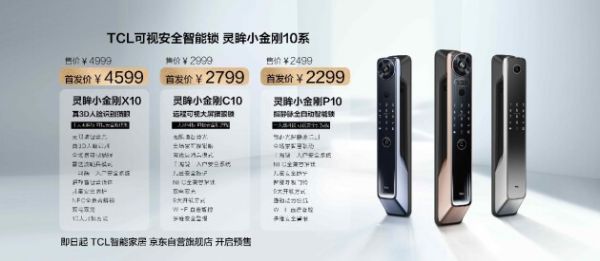 产品价格方面,本次发布的3款产品中,采用无限境设计与 3D 结构光人脸识别技术的 X10—— 售价4999元,首发尝鲜价4599元;拥有全场景可视猫眼,在哪都能看的C10——售价2999元,首发尝鲜价 2799元;搭载指静脉技术,老人小孩都能识别和大门铃的 P10,售价2499元,首发尝鲜价 2299元。