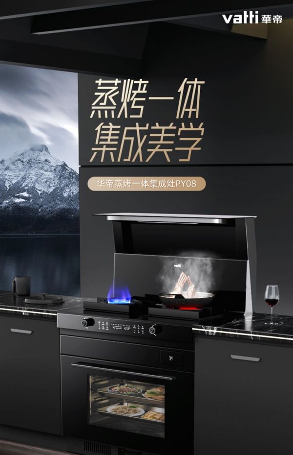 华帝的“好用”建立在产品的使用场景内,用恰到好处的实用性功能给用户提供良好的使用体验。以华帝PY08集成灶为例,一机集合烟、灶、烤、蒸四大主要厨电产品功能,并且通过Vcoo系统可以实现远程操控、智能互联。