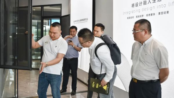 来访人员在董事长余永山先生的陪同下,参观我司终端生活体验馆及智能化生产基地。参观过程中,来访交流团对诺菲特门窗的生产制造管理、展厅产品、研发体系等表示赞叹!