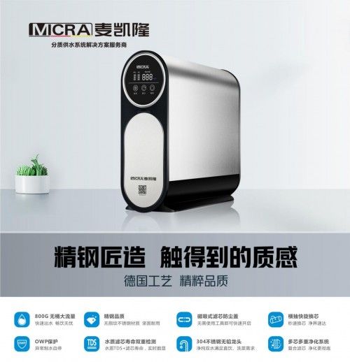 当下,饮水安全与健康已成为高品质生活的重要组成部分。随着消费水平的不断升级,消费者对饮用水提出了更多细分需求。爱茶者希望水能泡出的茶饮更为香浓,热衷厨艺的人对食材泡发的水质水温提出了更高要求,爱美人士则希望水可以让自己的肌肤更为细腻……,全屋分质供水净水场景化趋势亦越来越明显。面对消费端的需求变化,宁波麦凯隆净水科技有限公司积极推广分质供水净水系统解决方案,大力普及全新的饮用水理念,通过对前置过滤器、中央净水机、中央软水机、反渗透净水器、即热饮水机等不同类型的净水产品进行科学合理的搭配,有效去除水中细菌、余氯、有机污染物、重金属等有害物质,确保用户的饮水安全与健康。还可根据用户不同的用水需求提供不同品质的水源,不同温度的饮用水,实现系统化、场景化、个性化解决家庭对“饮、食、洗、浴”的不同用水需求,全面提升消费者的生活品质。