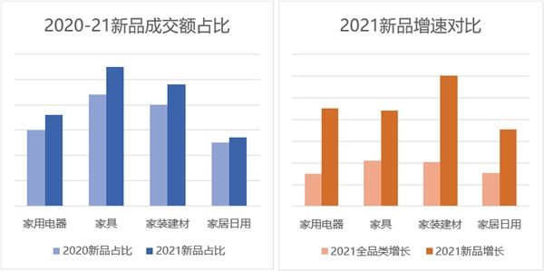 近日,京东消费及产业发展研究院联合新浪家居发布的《2022春季居家消费场景报告》指出,居家场景已经成为消费的重要增长极,其中智能化正在整合居家与家电等相关行业;基于京东消费情况,新一代消费者对自身需求更为明确,在近一年中,京东商品上新数量超千万,新品年度销售额贡献已超六成。同时,新品消费用户整体销量贡献占比达34%,平均消费单价是整体平均的1.4倍。因此,年轻消费者的新品消费偏好给众多细分品类带来了弯道超车空间。