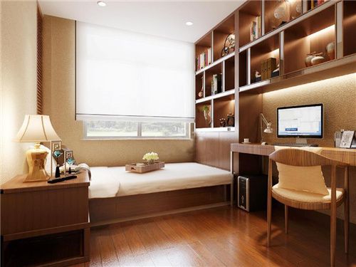 如果觉得入墙式书柜太繁复,墙面搁板简约又百搭,可收缩的简易书桌,也是节约空间的神器。这里就是你的阅读天地,睡在床上读书亦是唾手可得,满足你与书香入眠的愿望。