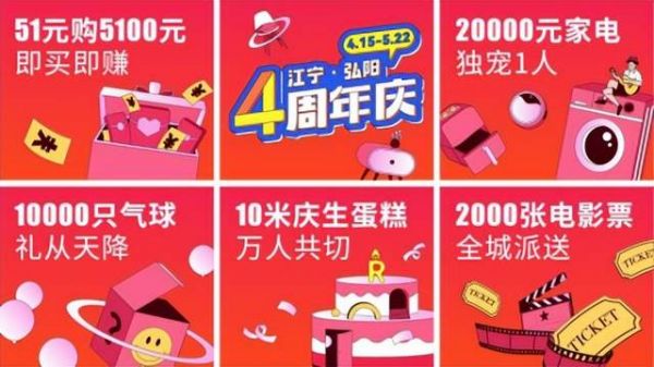 各种吸引眼球的优惠活动参与到4周年庆的狂欢中,同时也回馈了广大消费者四年来对弘阳家居南京江宁店的信任与支持。