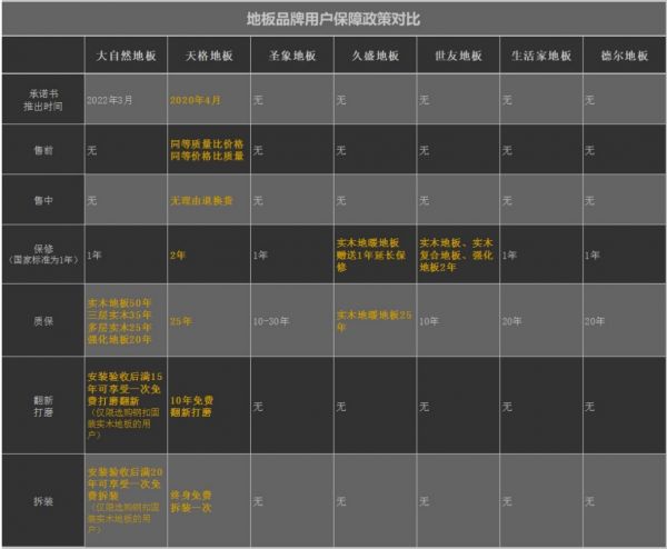 地板行业发展至今,产品本身的竞争和发展已经进入相对滞缓的状态,产品质量保障各大品牌难分伯仲。但作为半成品和耐用消费品,安装和售后的好坏直接决定了用户的长期体验。所以,在产品质量保障的基础上,很多具有创新精神的品牌开始积极探索包含安装服务和售后体系在内的“用户体验保障”。其中,以天格地板、大自然地板为代表的地板行业头部品牌,在近年就相继推出其售后保障政策。