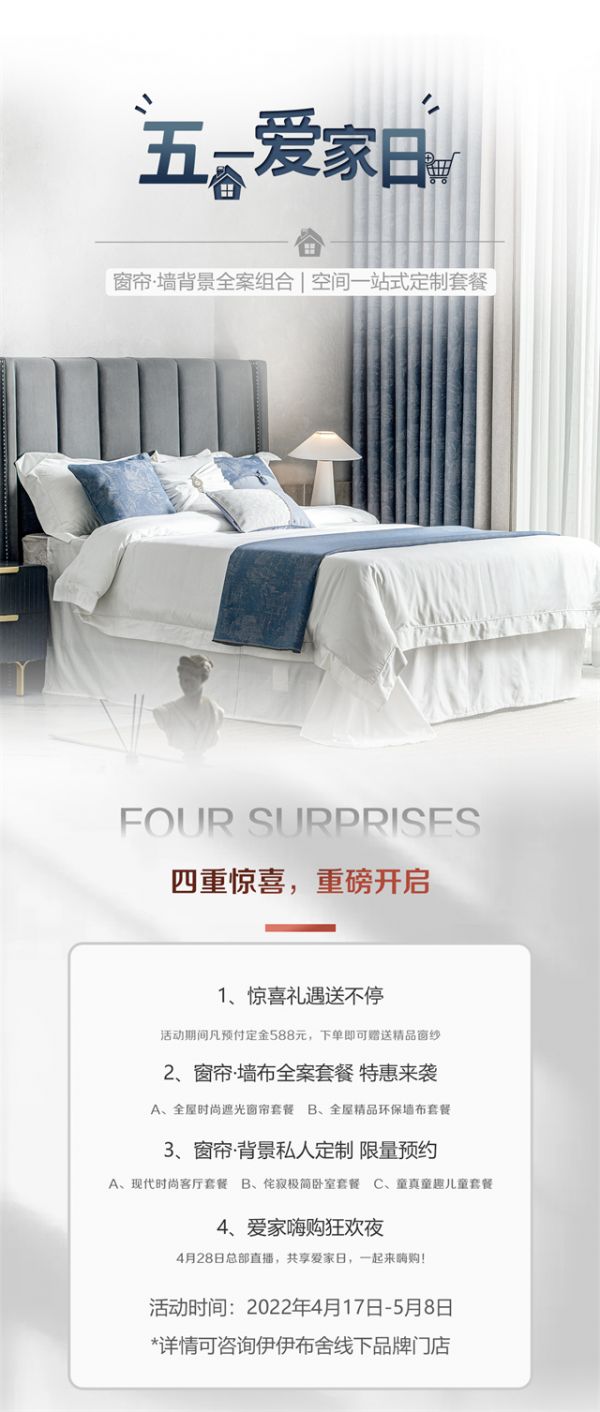 伊伊布舍坚持居家设计的理念·专业布艺 ·专注软装 ·专注家“美好生活从爱家开始”为了更好地传递我们的这一理念我们以后把每年的五一定为伊伊布舍的爱家日我们不仅会以实际行动回馈广大新老朋友我们也倡导对家的付出和对家人的陪伴!让我们一起用心创造,用爱筑家!