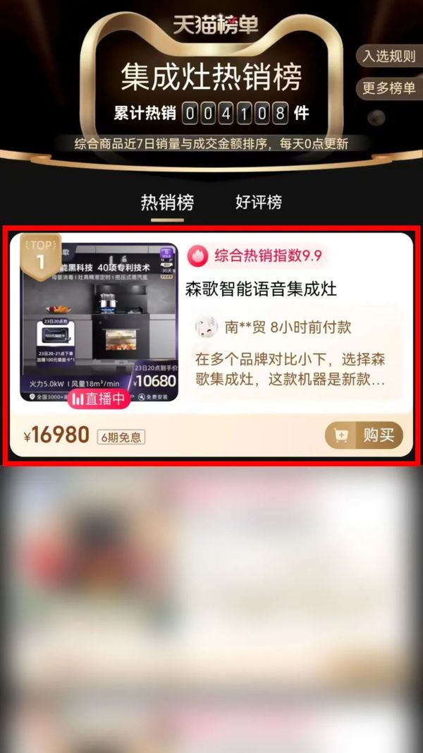 直播当天,新品i3ZK蒸烤消一体集成灶突出重围,占据了天猫单品第一、行业第一、店铺第一、热销榜第一的领先地位,延续了此前淘宝女王节首发预售第一、首发月售超2000台的火爆业绩。