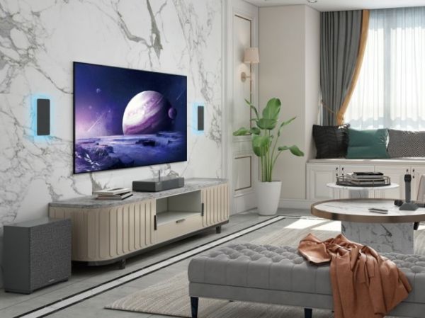再就是一个标准的家庭客厅影院系统,一般是由5.1或5.1.2声道构成,这就意味着,一个客厅内至少得摆放5只音箱,如果像传统大型落地音响,不但体积大占用空间位置,还严重影响家居风格,时间久了,灰尘落在设备上,打扫都成问题。