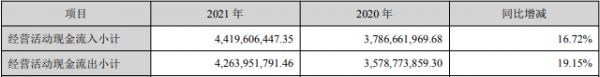 现金流方面,东易日盛同样具有较好的抗风险能力,2021年度东易日盛经营活动产生的现金流入达44.20亿元,同比增长16.72%,与营业收入增速基本保持同步,经营活动产生的现金流净额为1.56亿元。