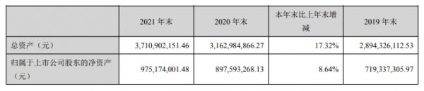 在总资产方面,截至2021年末,东易日盛资产总额为37.11亿元,同增17.32%;归属于母公司净资产9.75亿元,较上年增长8.64%,资产持续增长,发展态势良好。