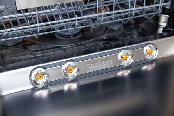 LG蒸汽洗碗机在门板底部增加了四个蒸汽喷口,工作时会喷射高温蒸汽,洗好的餐具铮亮,简直比新的还新。蒸汽除菌,洗净看不见的细菌,脊髓灰质炎病毒的去除率>99.99%,幽门螺旋杆菌的除菌率>99.999%。