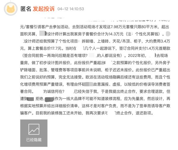 尽管价格永远是左右消费者决策的重要因素,但前提是建立在“品质”基础之上,纵观消费着投诉平台黑猫投诉上关于整家套餐的投诉中,基本集中在套餐增项多、价格不透明、延迟安装、定制周期长等层面。