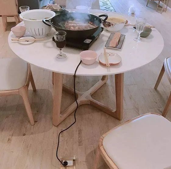 Yes:餐桌底下装地插,吃火锅方便多了!