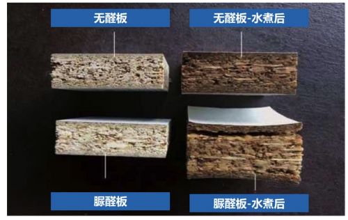 如果要彻底解决甲醛超标现象,生产办公家具的板材只有使用无甲醛胶粘剂(MDI 聚氨酯胶黏剂),才有可能真正达到。MDI聚氨酯胶黏剂,依靠其独特的分子结构与木材中的羟基及水分反应形成网状的氨基甲酸酯键及聚脲,因此具有优异的胶、强度和耐水解性,正是由于其优异的理化性能,使得MDI聚氨酯胶黏剂成为目前应用最为成熟的人造板用无醛胶黏剂。