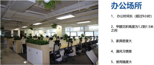 据了解,办公家具中的板材(基材)主要是由刨花板或密度板承担,而生产刨花板(密度板)中所用的胶水,主要成分为脲醛树脂和酚醛树脂,它们都有甲醛参与合成。大家知道,合成的化工材料结构极不稳定,在办公家具的使用中会裂解,释放出一定量的游离甲醛,危害人体健康,影响人居环境质量,释放周期为15年。