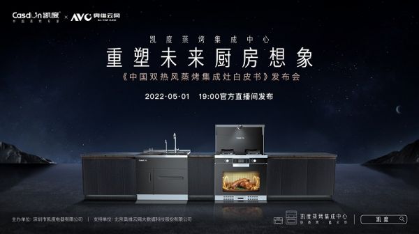 2022年5月1日,凯度电器即将携手奥维云网,重磅发布《中国双热风蒸烤集成灶白皮书》,共同探讨双热风蒸烤集成灶的发展趋势和未来,为千万中国消费者提供智能一体化的美好厨房解决方案。届时天猫、京东、抖音三方将同步直播,可实时互动,与资深行业专家分享您心中的未来厨房,欢迎一起探寻现代美好新厨房。