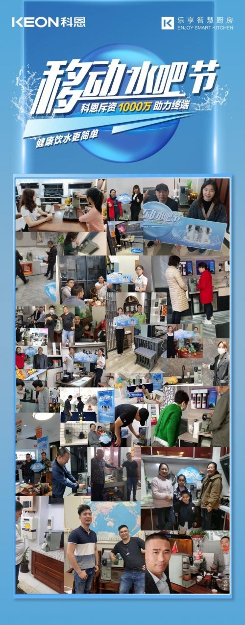 集成灶十大品牌、厨电行业十大品牌科恩移动水吧节,誓让国人喝好水,全国免费体验活动正在火热进行中,全国终端门店强势联动,为用户带来重磅政策与诚意豪礼,免费体验,产品始终如一。