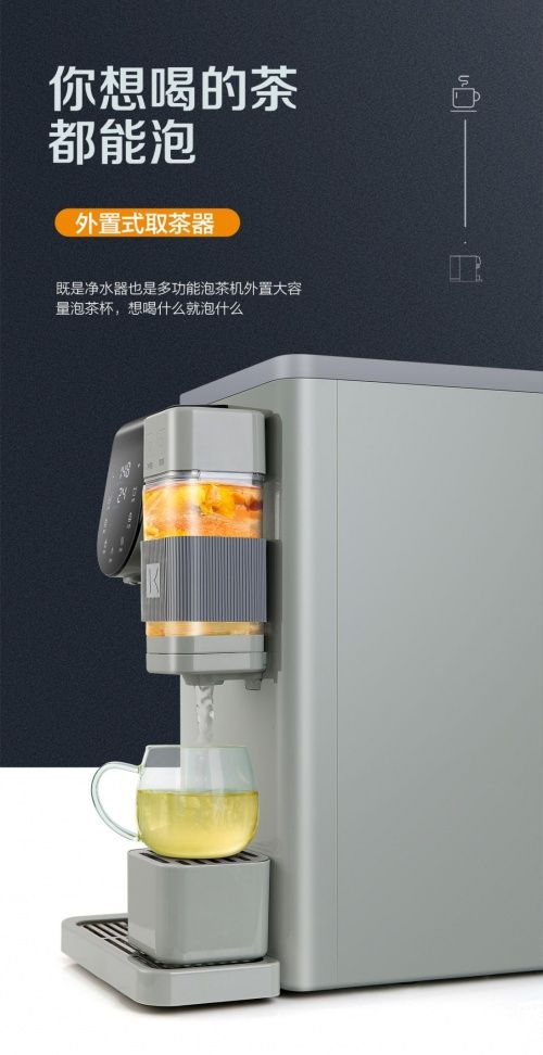科恩多功能移动式净水器R6068最大的亮点在于,拥有外置式取茶器,既是净水器也是多功能泡茶机,外置大容量泡茶杯,想喝什么就泡什么,各种养生茶/下午茶任意泡!