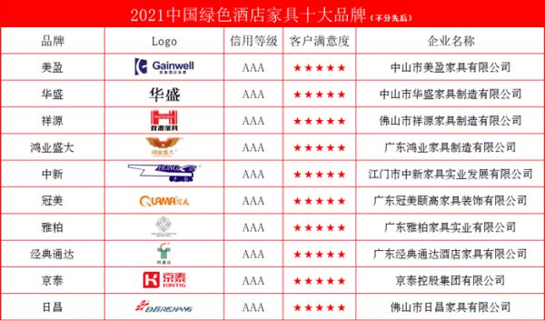 2021中国绿色酒店家具十大品牌
