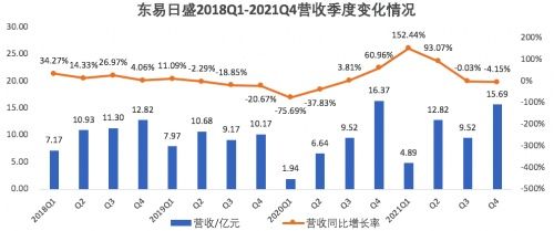2022年4月15日,东易日盛发布了2021年度报告,报告期内,通过技术研发,产品、服务优化,以及新零售大店的开设等工作的有序开展,东易日盛2021年度实现产值、收入双增长。营业收入42.92亿元,同比增长24.52%,归属于上市公司股东的扣除非经常性损益的净利润0.85亿元,同比增长12.89%,由于经营活动产生的现金流量净额为1.56亿元,基本每股收益0.18元。