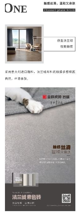 好产品都值得升级钻研,力求极致!为了使素色砖的装饰及物理性能更出色,金科瓷砖在原有的产品基础上进行工艺升级,全新打造更质感瓷砖“法兰绒”素色砖,细致的肌理,低饱和度的灰色系,光与触感的交互,细腻无比!