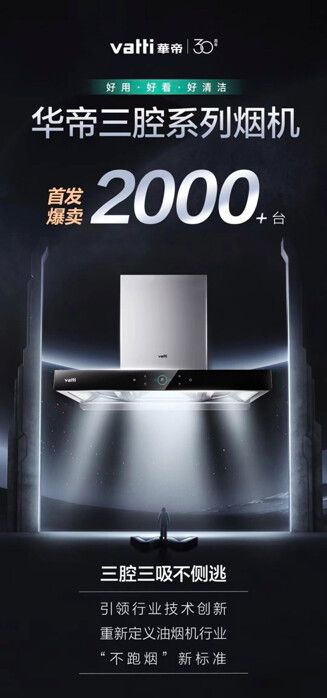近日,华帝重磅发布三腔系列烟机新品,首发当日就爆卖2000余台,首战告捷,实现上市即上量,上量即热销!