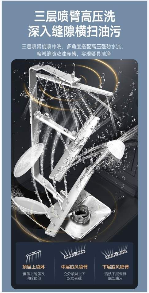 中式烹饪的浓油赤酱,西式料理的黄油芝士,让餐厨用具多油腻重重、极难清洗。而且,普通洗碗机往往无法清洁到碗碟的边边角角,还需要手动“二次清洗”才能达到理想的清洗效果,如此便需要沾染恼人的油污,无法彻底解放双手。