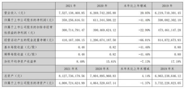 4月29日,万和电气(002543.SZ)发布2021年年度报告。报告期内,万和电气营业收入75.27亿元,同比增20.05%;归属于上市公司股东的净利润3.58亿元,同比降41.40%;归属于上市公司股东的扣除非经常性损益的净利润3亿元,同比降22.99%;基本每股收益0.48元,同比降低41.46%。