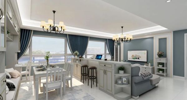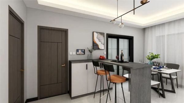 小户型、客厅采光不好或客厅布局为大横厅的朋友们,YOYO建议利用吧台来隔断,吧台不宜过高,要保证空间的开阔性,避免阻挡空间的整体视线。细长的吧台让客餐厅有了明确的划分,隔而不断的特性还能保证不同空间的互动交流。