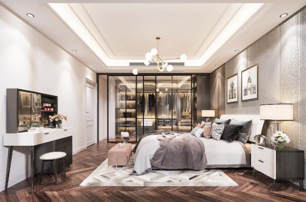 利用玻璃隔断分隔出衣帽间,能够保证衣帽间的良好采光,在梳妆打扮时更加方便。