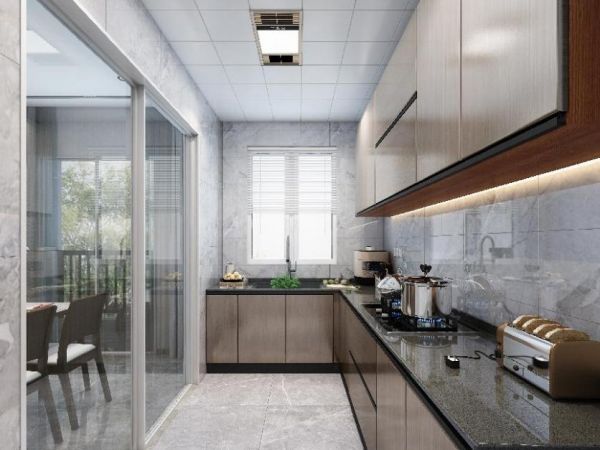 厨房隔断:利用玻璃推拉门作隔断,避免油烟侵扰