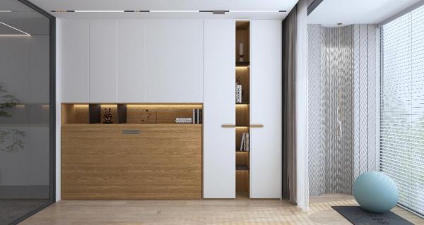 拉帘不仅能起到遮光的作用,稍微厚重的布料还兼具隔音的功能,避免两个区域互相打扰。YOYO建议拉帘最好搭配静音滑轨,能有效减少拉动时产生的噪音。