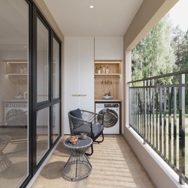 阳台隔断:利用纱帘、玻璃推拉门作隔断,实用又美观