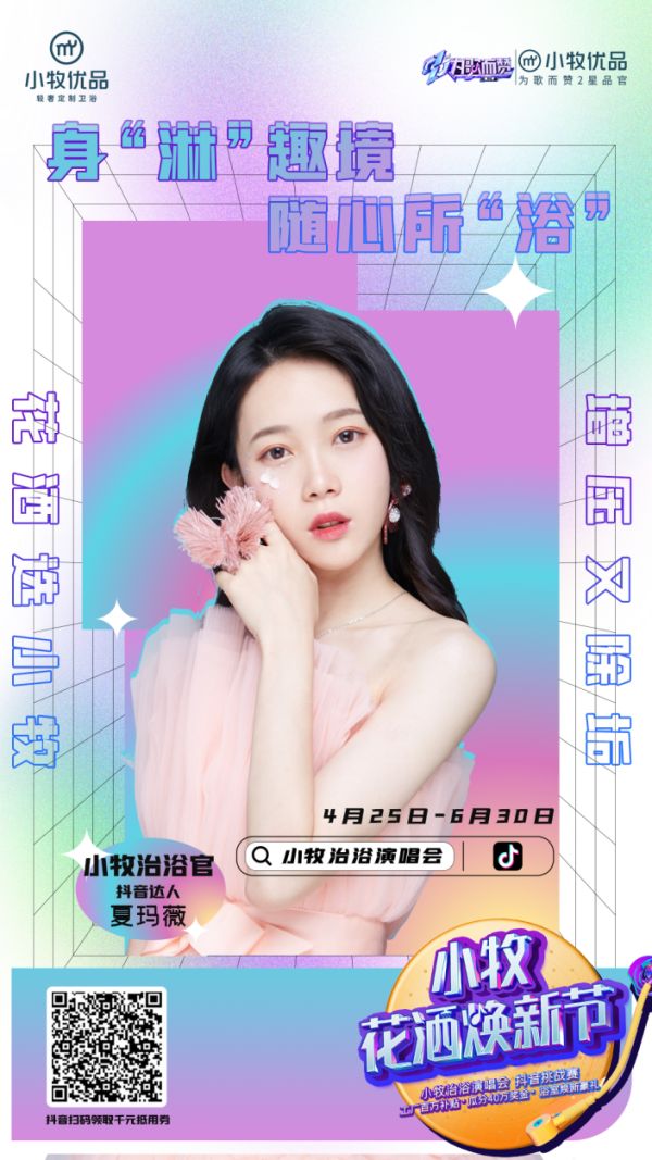 小牧优品作为《为歌而赞2》星品官,同期携手抖音发起“小牧治浴演唱会”抖音挑战赛,诚邀您参加,沉浸式体验《为歌而赞2》,施展音乐才华,牧浴治愈力量,赢取惊喜礼品!