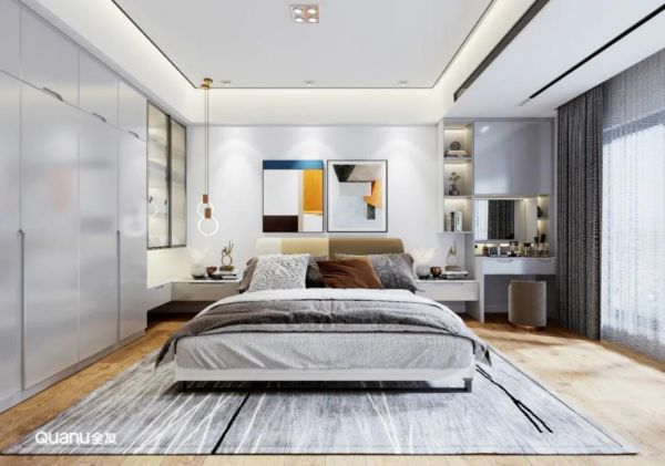 悬空的床头柜不仅拥有常规床头柜的美观和实用,还减少了卧室的厚重感,带来更轻盈的居室氛围,打扫卫生的时候也更方便,不需要再将床头柜搬来搬去,省时又省力。