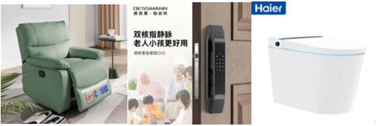 芝华仕头等舱单人沙发、德施曼全自动指静脉智能锁、海尔高端全自动款智能马桶