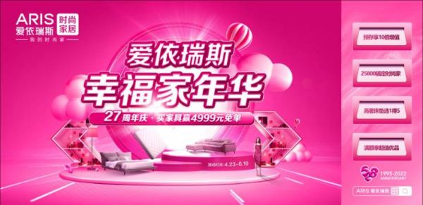 值此27周年之际,爱依瑞斯为爱粉们带来了诚意十足的“幸福家年华”感恩回馈活动,4.23-6.19日,免单大奖拿到手软、超值套餐省到尖叫......各种真金白银的优惠活动,让每一位支持与陪伴爱依瑞斯的消费者切实感受到划算与超值!
