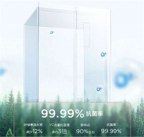 这款冰箱同时具有AAT负离子养鲜技术,萃取于新疆阿尔泰山脉的稀有天然碧玺矿石,活化熔入风道,24小时高效释放负氧离子,实现抗菌、净味、除尘、抗氧化于一体,抗菌率高达99.99%。