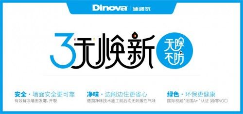 迪诺瓦用自己的实际行动践行“绿色环保”的健康理念:其产品不添加甲醛、苯、塑化剂、重金属等有害物质,并取得国际权威机构的认证,完全可以放心的使用;每款产品面世都要历经上万次的测试,以确保其具有持久有效的抗醛、防霉、抗菌功能,能够很好的保障用户的健康。基于此迪诺瓦提出了“无尘、无味、无声”的“三无焕新”模式,可实现用户边刷边住的理想,省去了家庭重装中不必要的麻烦,大大的提高了家装效率。