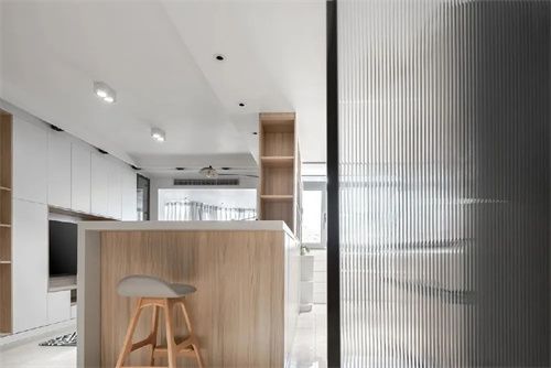 1、玄关:进门处加入隐私玻璃的设计,阻挡别人窥探的视线、以免室内空间一览无遗,安全感十足,保证空间的通透性。
