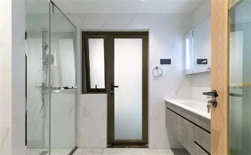 4、卫生间:隐私玻璃不但可以分离干湿区,还能营造私密性,不影响光线,形成一种隔而不断的朦胧质感。