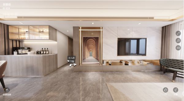 确定的设计效果中,钟先生家的电视背景墙选择大板砖铺贴,然而由于尺寸原因选择的砖纹却并非连样花纹,钟太太作为一个细节控,对此非常在意。为了解决这一问题,拉齐娜组织了负责钟先生项目的设计师、项目经理、铺贴工人及瓷砖铺贴厂家共同上门,从无数的瓷砖中选择纹路相近的建材,小心标记摆放,最后通过拼接将不连纹的砖做到了连纹。整个过程花了近一天的时间,当时正值夏日,房屋里还没安装空调,看着他们大汗淋漓地去追求细节上的完美,钟先生表示自己既心疼又庆幸。“心疼他们默默无闻的付出,庆幸的是我没有选错装修公司。”