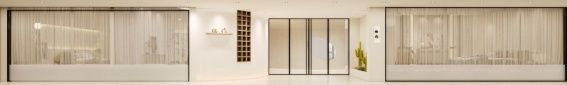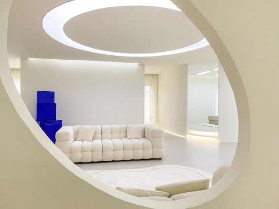 馆内几步可见的墙面镂空椭圆,是栖作特有的“呼吸孔”,这种透视的结构能够让睡眠馆相互贯通,有一种通透感。